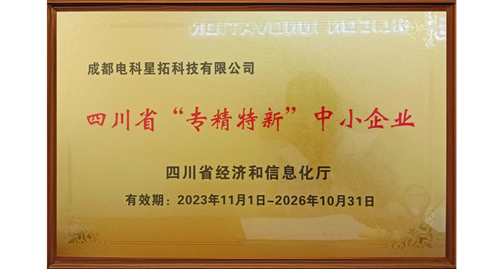 近日,四川省经济和信息化厅为电科XPJ官网正式颁发2023年度四川省专精特新中小企业牌匾,标志着电科XPJ官网在工信部优质中小企业梯度培育进程中,再上一个新台阶!